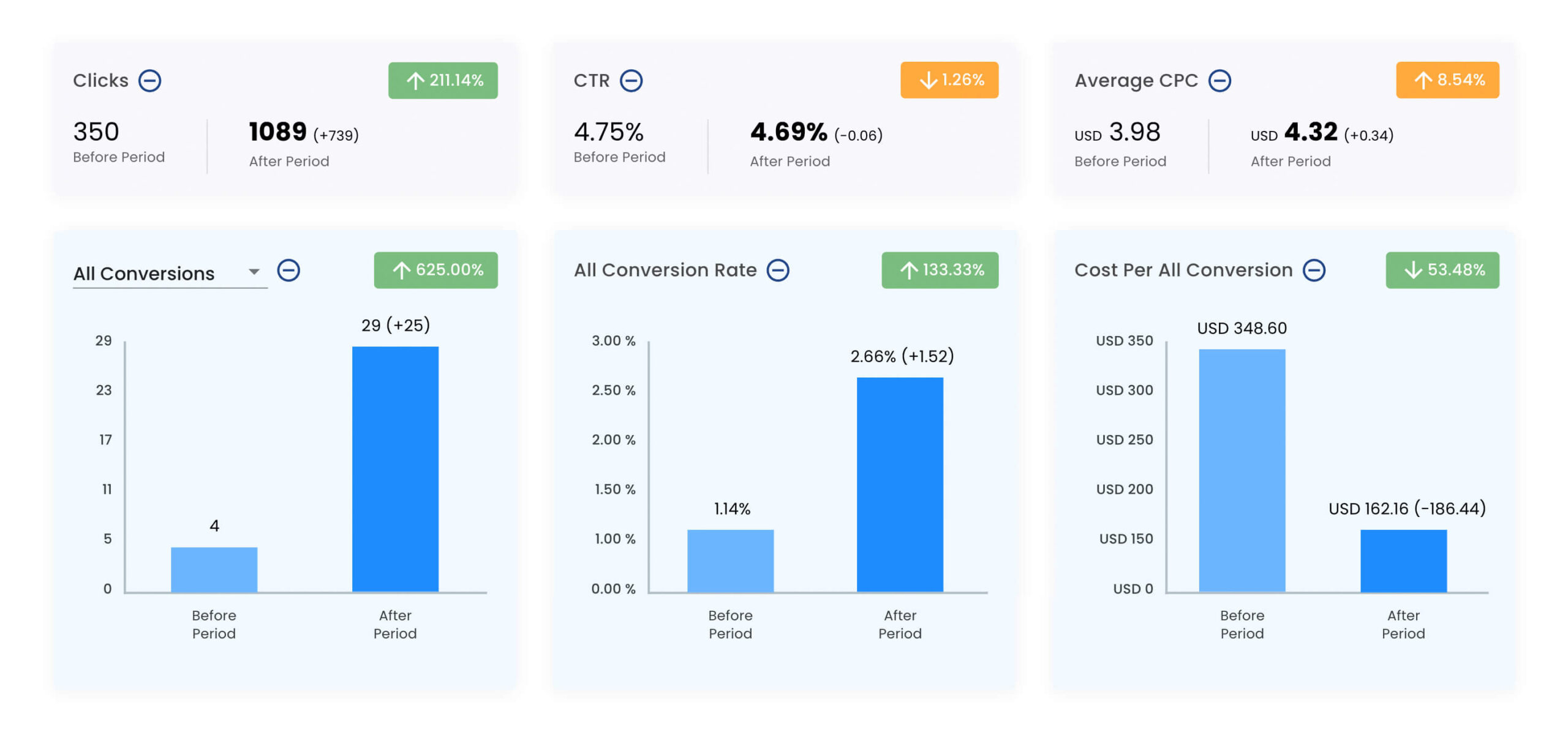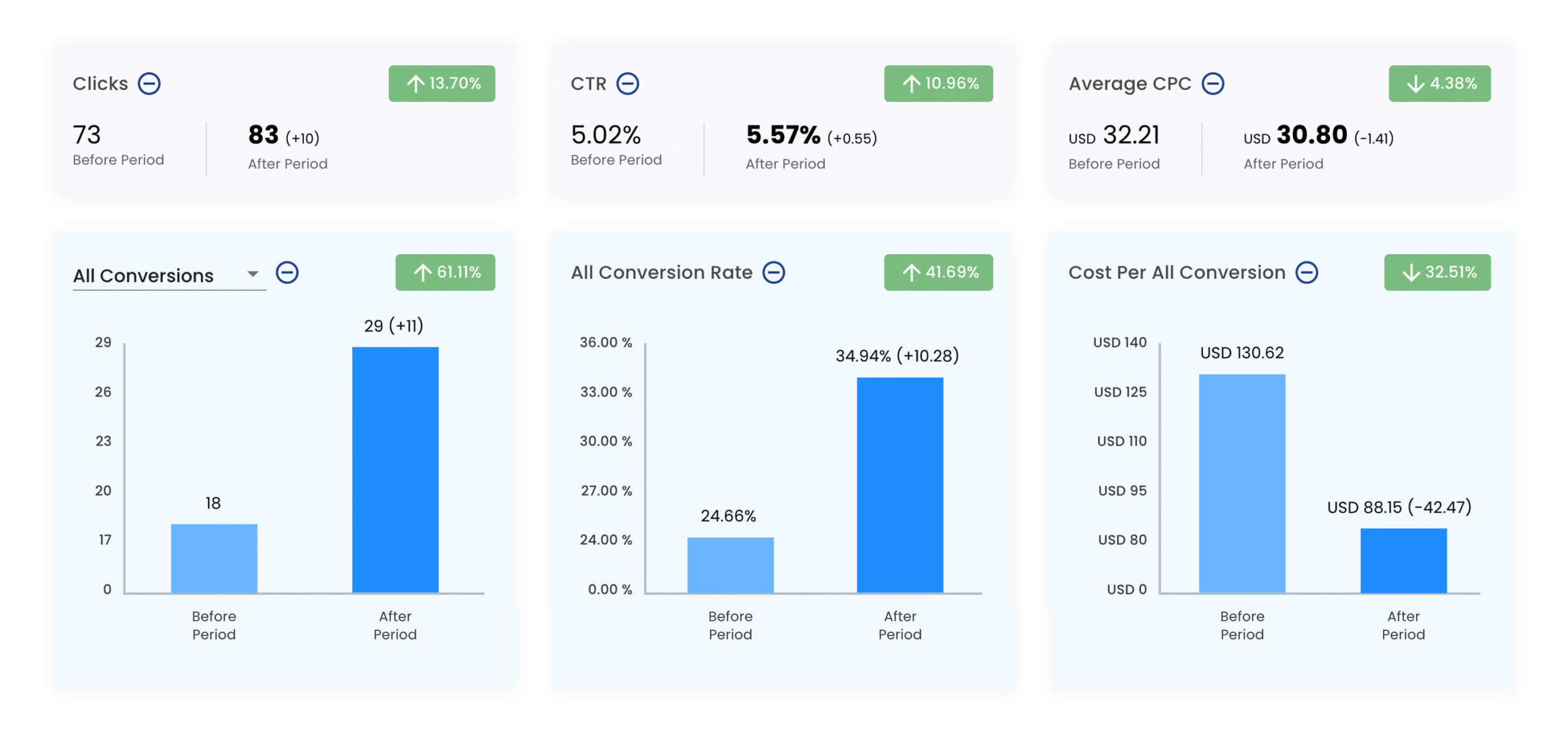 Als Ergebnis von tieferen Konversionskosten sehen wir in der Regel einen Anstieg der Conversions um 34 % oder mehr.